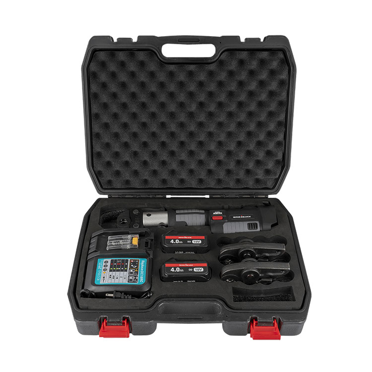Tête pivotante 1.360, joint de sertissage d’ouverture et de fermeture, adapté au travail sur n’importe quel site. 2. La fonction de pause abrupte peut être contrôlée à tout moment, et même rétractée manuellement. 3. Selon la conception ergonomique, avec poignée antidérapante. 4. Système de contrôle par micro-ordinateur, avec fonction de comptage “double protection pendant le fonctionnement” de contrôle d’auto-pression, à travers l’onduleur pour réaliser l’échange entre l’ordinateur et les données. 5. La batterie lithium-ion haute performance, fournissant une puissance plus puissante “pas d’effet de mémoire de décharge” peut être efficacement sertie 200 fois sur une seule charge. |